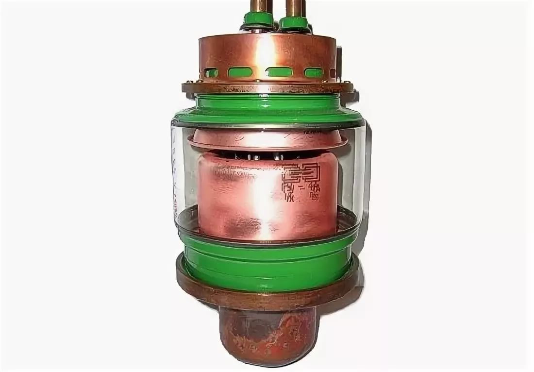 Лампа генераторная ГУ-4А мощный триод с вольфрамовым торированным карбидированным катодом с водяным охлаждением анода, предназначенный для работы в радиотехнических устройствах стационарной аппаратуры.