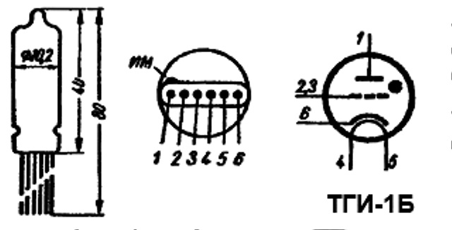 ТГИ-1Б тиратрон импульсный модуляторный относится к разделу электровакуумных приборов и ламп различного назначения.  По конструкции тиратрон импульсный модуляторный состоит из вакуумно-герметичной, жесткой оболочки, внутри которой отсутствует кислород.