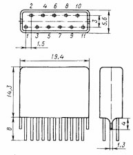Микросхема 235УВ1А предназначена для использования в КВ и УКВ радиоаппаратуре на частотах до 150 МГц.