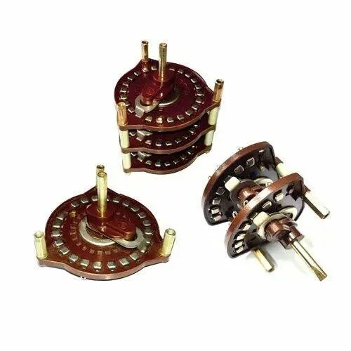 Переключатель щеточный 24П4Н1 предназначен для коммутации электрических  цепей постоянного и переменного тока в радиоэлектронной аппаратуре. Условное обозначение:  24П - количество рабочих положений на плате; Н 4 – количество направлений (плат) в переключателе; 1 - величина угла между контактами - фиксация через 15⁰.