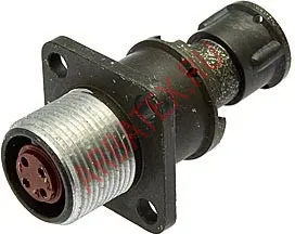 Приборная вилка (розетка) конструктивно состоит из: 1 - корпуса c фланцем, 2,3 - изоляторов, 4 - гнезд (штырей), 5 - пружинного кольца.