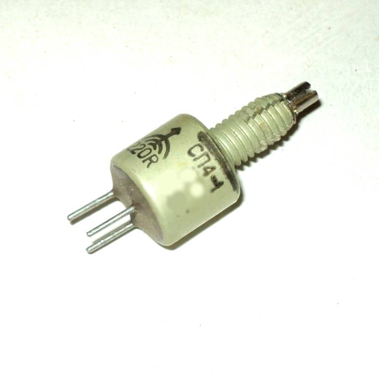 ВСП4-1В 0.25Вт 6.8 кОм резистор переменный регулировочный непроволочный, для навесного монтажа. Одноэлементный однооборотный без выключателя с круговым перемещением подвижной системы и концом вала ВС-2. Предназначен для работы в цепях постоянного, переменного и импульсного токов.