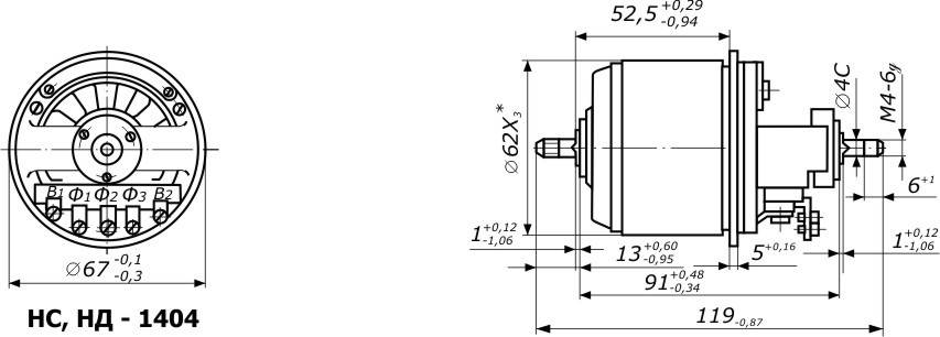 Контактные сельсины НД-1404П выполнены в соответствии с асинхронными электродвигателями с ротором небольшой мощности. Статор сельсина НД-1404П не явнополюсной, обмотки— распределенные.