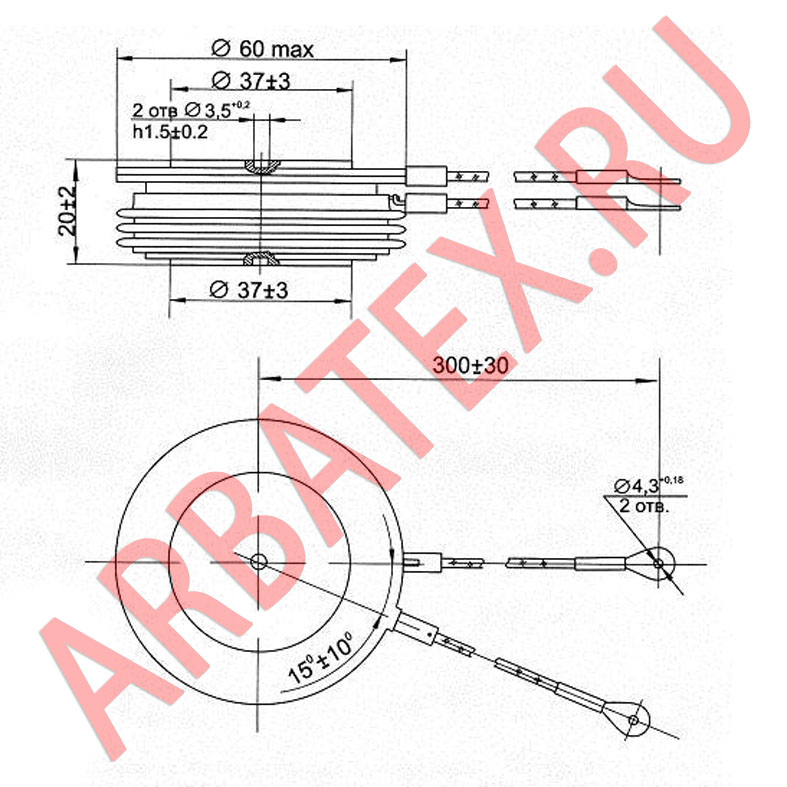 Масса тиристора не более 6 г.