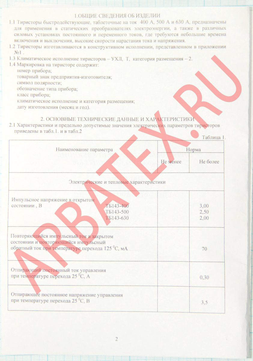 Маркировка тиристоров ТБ143: