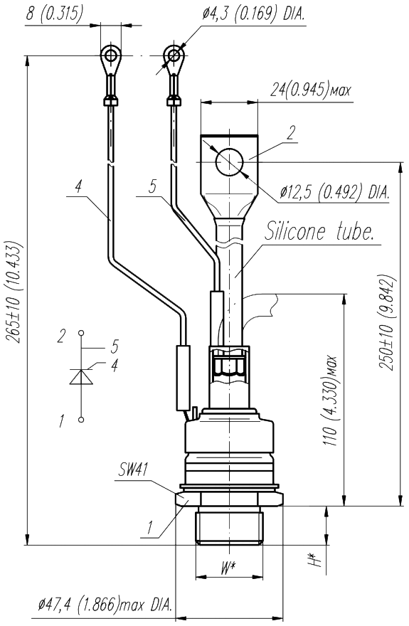 ТБ271-250-12 состоит из трех вводов, одним из которых является управляющий электрод – используется для резкого перевода тиристора в состояния включения.