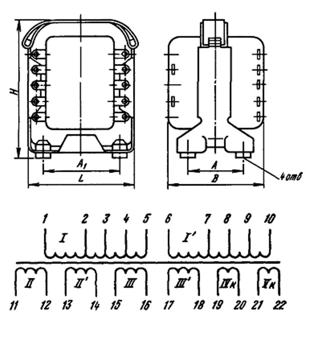 Трансформаторы анодные типа ТА изготавливают на стержневых и броневых магнитопроводах унифицированной конструкции, мощностью от 12 до 510 В*А с выходным напряжением 28...1260 В на токи нагрузки 25...1000 мА.
